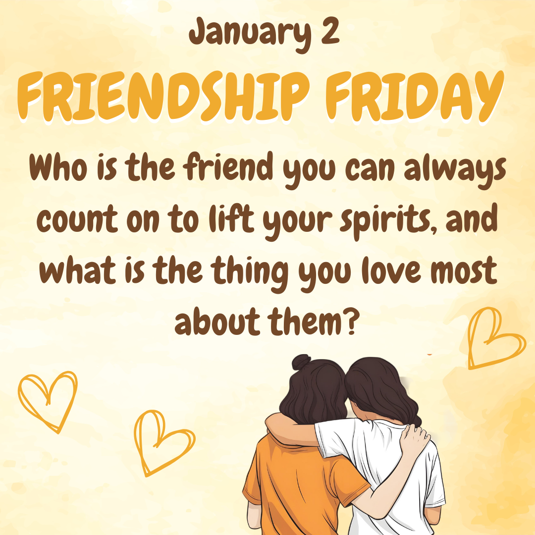 Who is the friend you can always count on to lift your spirits and what is the thing you love most about them? Jan 2 Written By Claire Sinclair Friendship Friday friendship fridayfriendscount on mefriendship Claire Sinclair